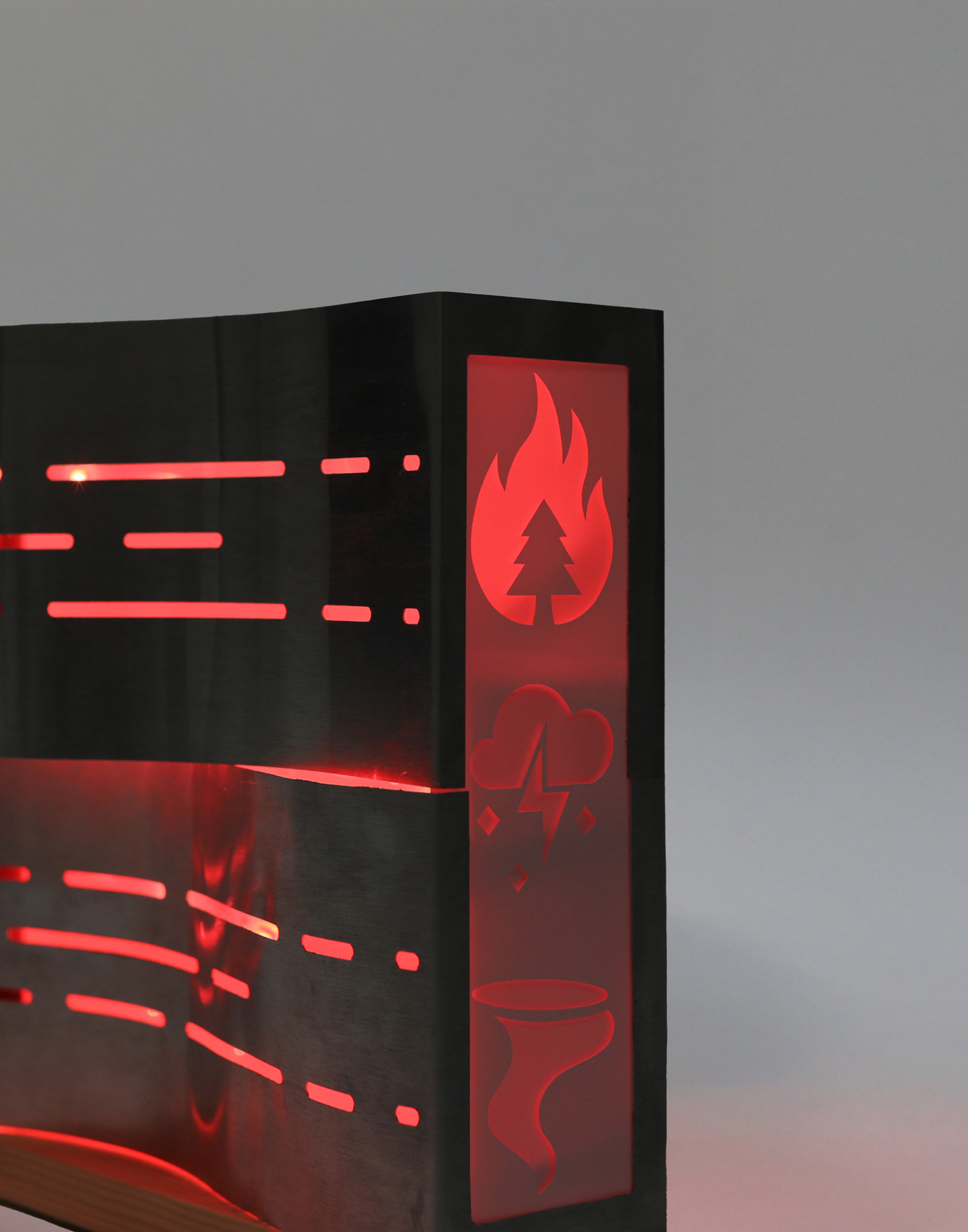 The Problem: During natural disaster emergencies, hearing-impaired people living alone often miss sound-based alerts. At home, lowered attention to phones (a common alert system) increases vulnerability, while existing safety devices often lack aesthetic elements, discouraging their integration into home life.